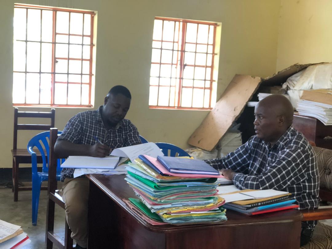 In the Image from Left is the Secretary Land Board Mr Waguma Andrew and on the right side is the Chairperson Land Board Mr  Kinene Vicent doing official duties.